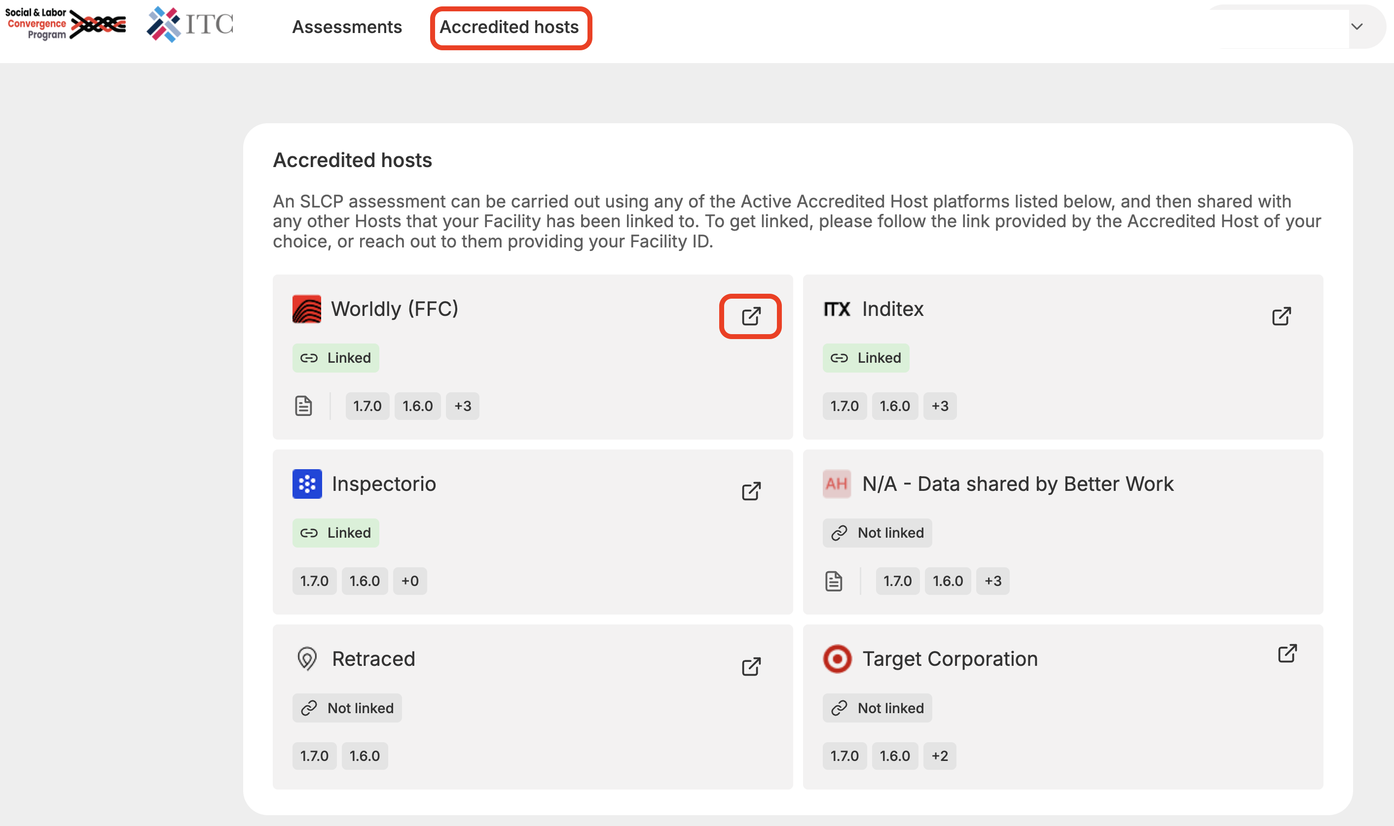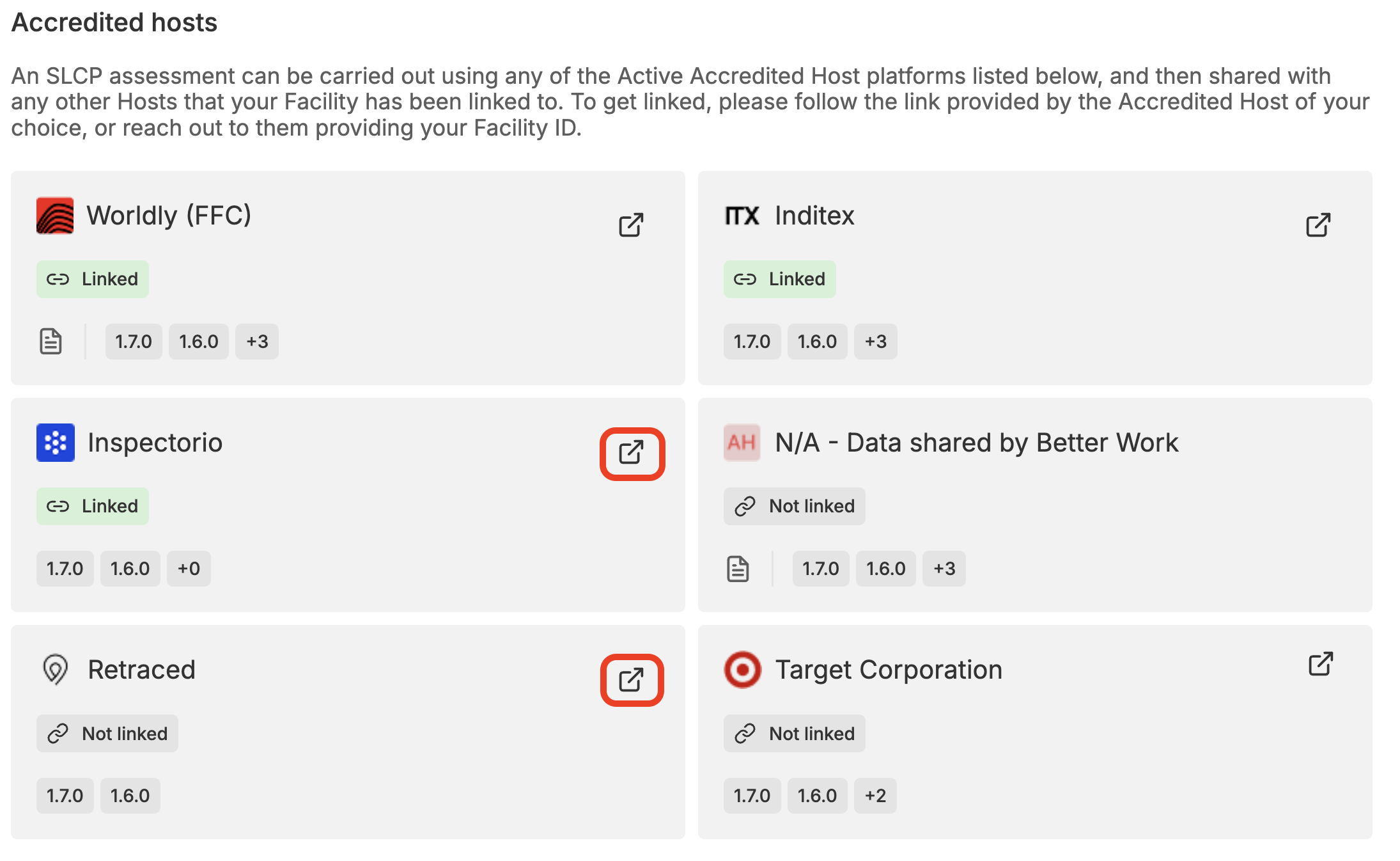 This support article will guide you on how to connect with each of the SLCP Accredited Hosts and explain what the requirements are to complete the connection. You will also find out about how you can share your SLCP assessment data.