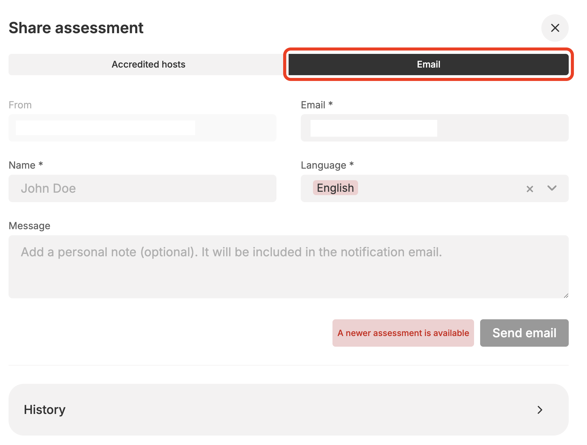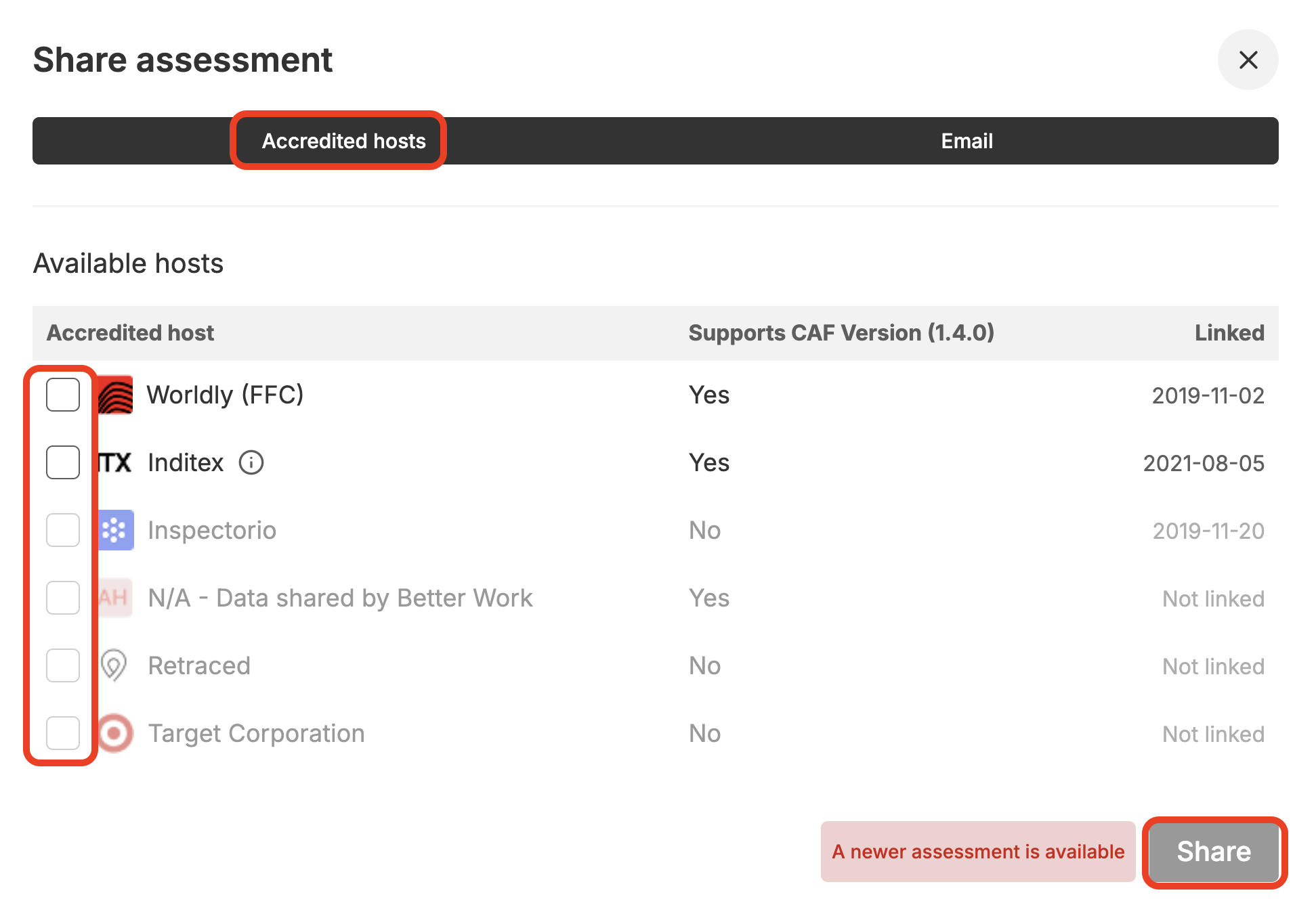 - Select your preferred Active Accredited Host and click “Share” to send the report