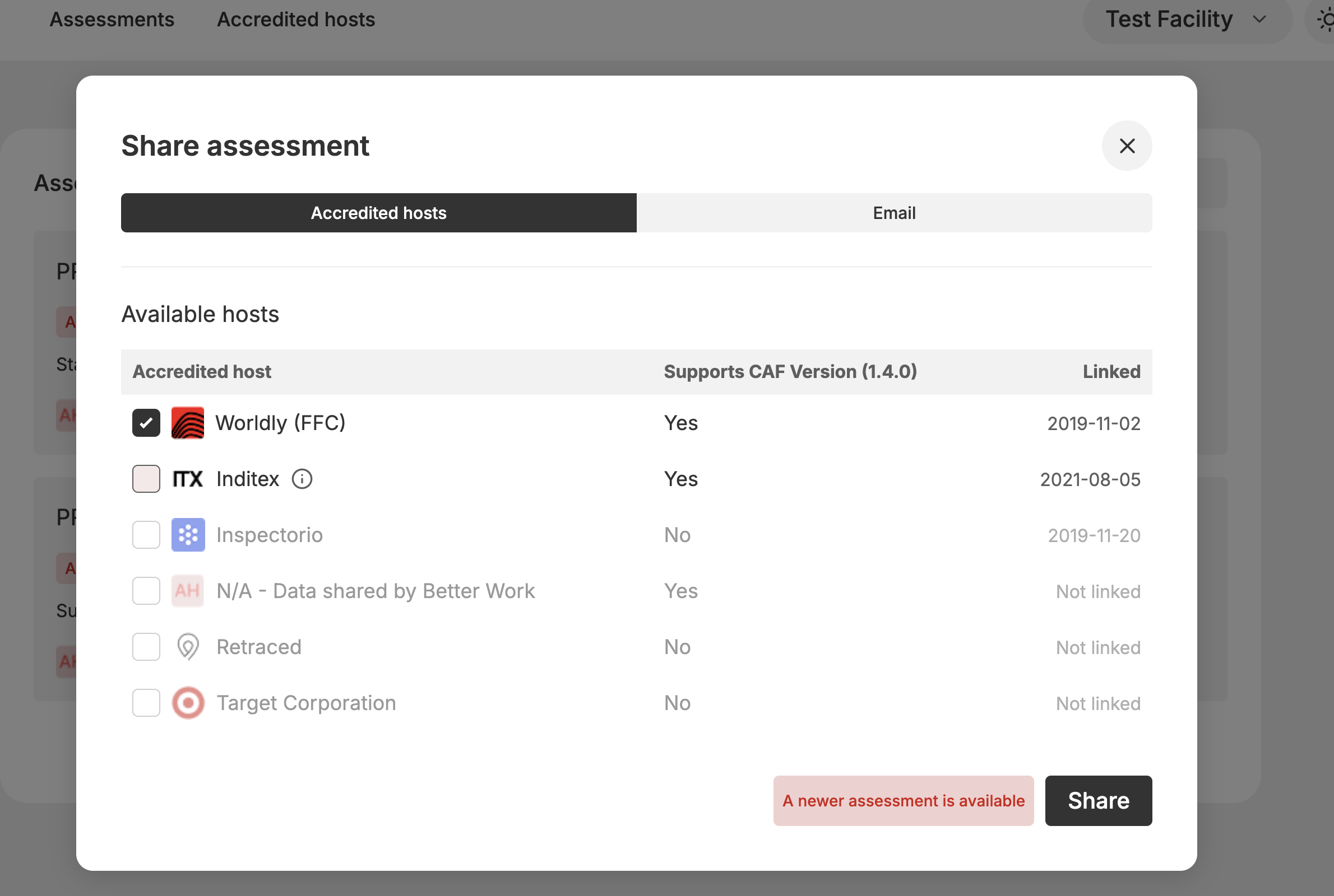 - Select your preferred Active Accredited Host and click “Share” to send the report